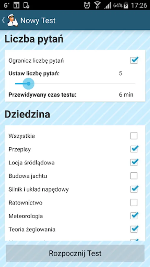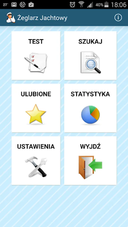 The application includes Copyright © tests help sentence the state exam for patent yacht sailor, prepared by a team of sailors yacht, motorboat skippers, enthusiasts of boats, yachts, sailing boats, personal watercraft, general sailing and power boat.