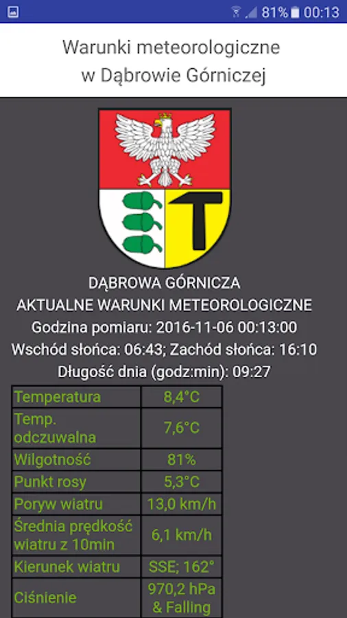 Additionally, we have access to current meteorological conditions downloaded from the autonomous weather station in Dąbrowa. The application is the ideal location for emergency services, sailors, tourist guides, tourists, enthusiasts of meteorology as well as residents of the area who want to have access to current data meteo and wish to obtain timely information about the impending threat (due to the application can obtain information about the risk of hail) .