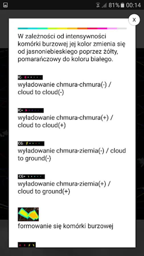 The application allows you to keep track of the emerging and existing storm cells on the selected area of the Silesian province of the central point in the city Mining oak wood. Unlike other tools available application uses data from meteorological stations and storm detector new generation installed in the Mining oak. With this application, we very carefully monitor the conditions conducive to the formation of a storm and the same storms. In addition to the location of storm cells also get information about the type of discharge (IC - discharge cloud-cloud; CG - discharge cloud-to-ground), as well as the intensity of the storm and the exact statistics occurring phenomena.