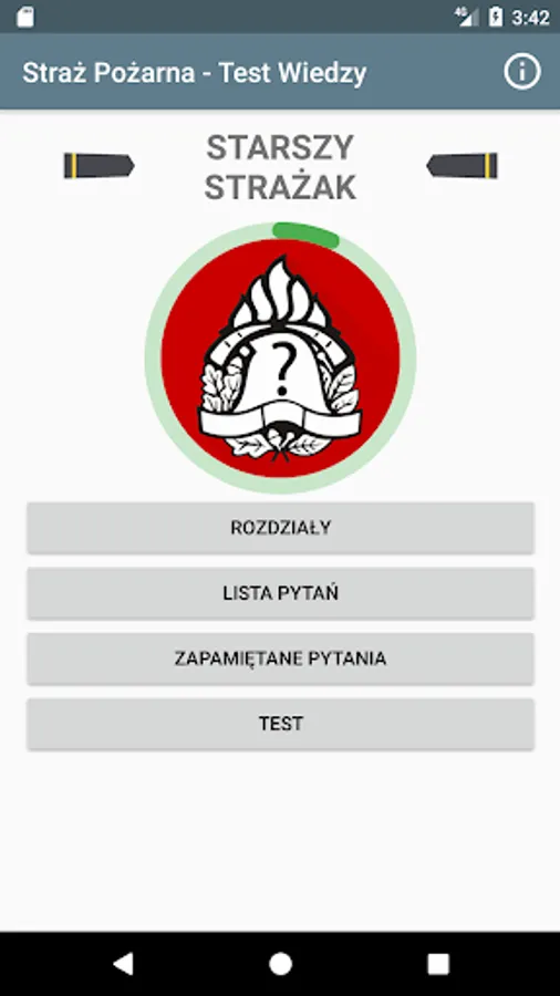 The application contains a collection of nearly 1,000 questions in the field of activity of the National Fire Service, which are meant to be used during the inspection of the operational readiness of the fire and rescue units.