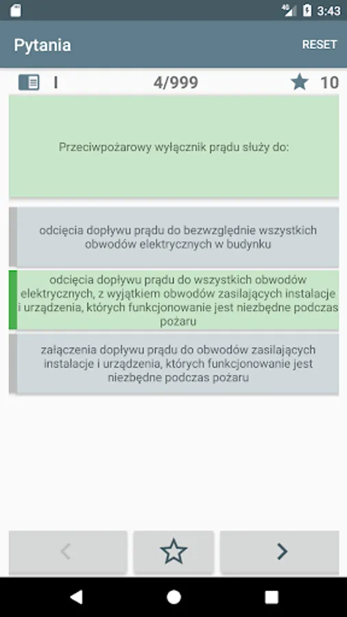 The application allows you to easily read the database, perform simulated tests, and mark questions making it hard.