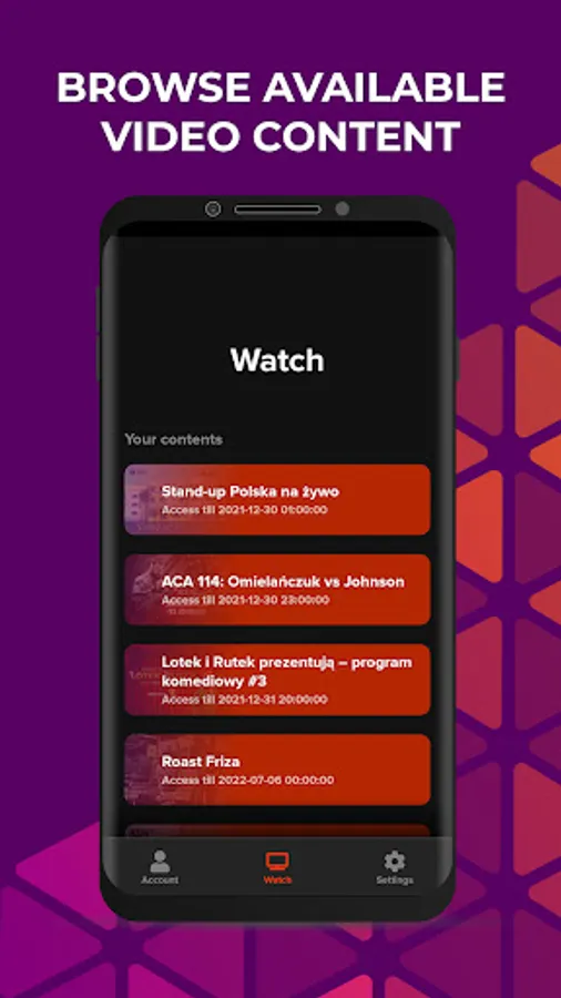 - Access to many events broadcasted live in the PPV system such as concerts, martial arts, theatre and comedy performances and more in real time