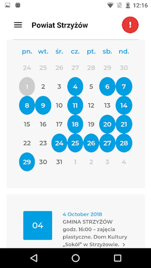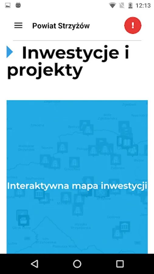 The application is supplemented by the latest news, a list of cultural and sporting events, weather forecast, an interactive map of investments in the poviat, containing information about completed investment projects, a news bar and a system of regional warnings.