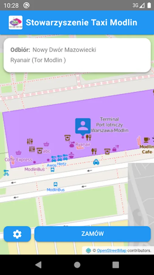 Order Taxi Modlin from your smartphone, efficiently and quickly to the address or GPS position.