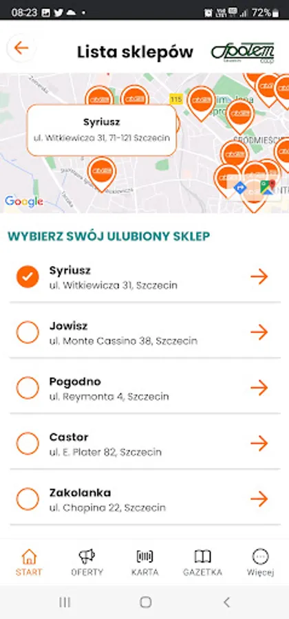 * No matter where you are, you can easily find a Społem store nearby - the map will show you the nearest store, you can plan a route to it