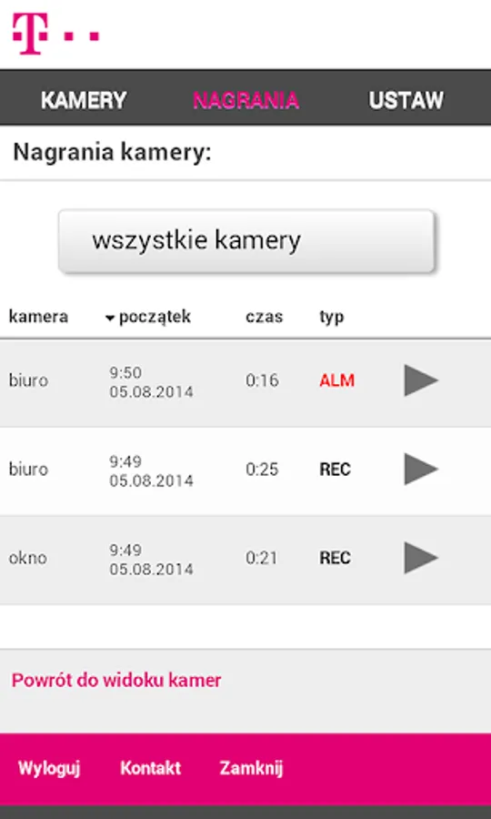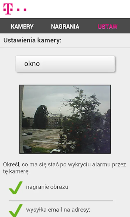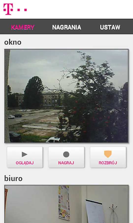 The Video Monitoring T-Mobile allows you to use video surveillance service. To use the service you need to purchase a video surveillance camera. By logging in to the system, users can access the following features:
