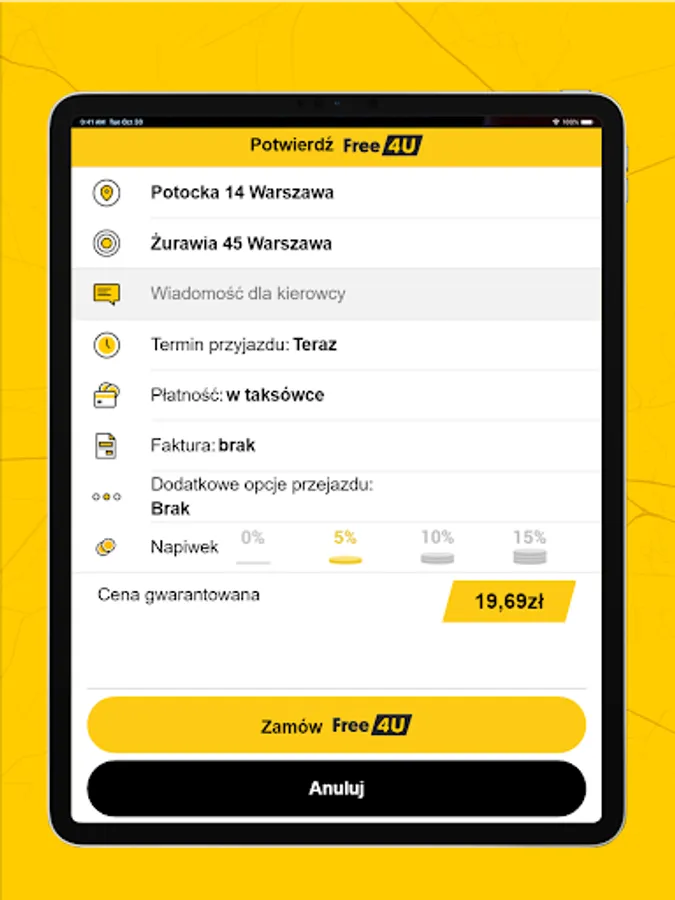 A new FREE4U service appears in the latest version of the TAXI POLSKA application.