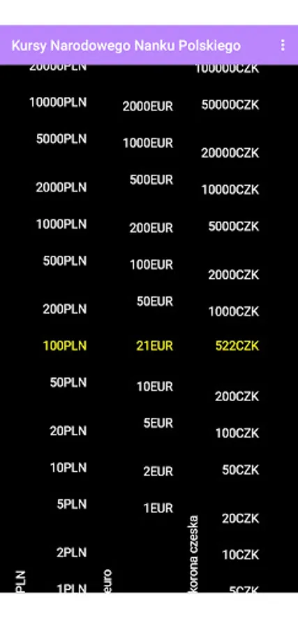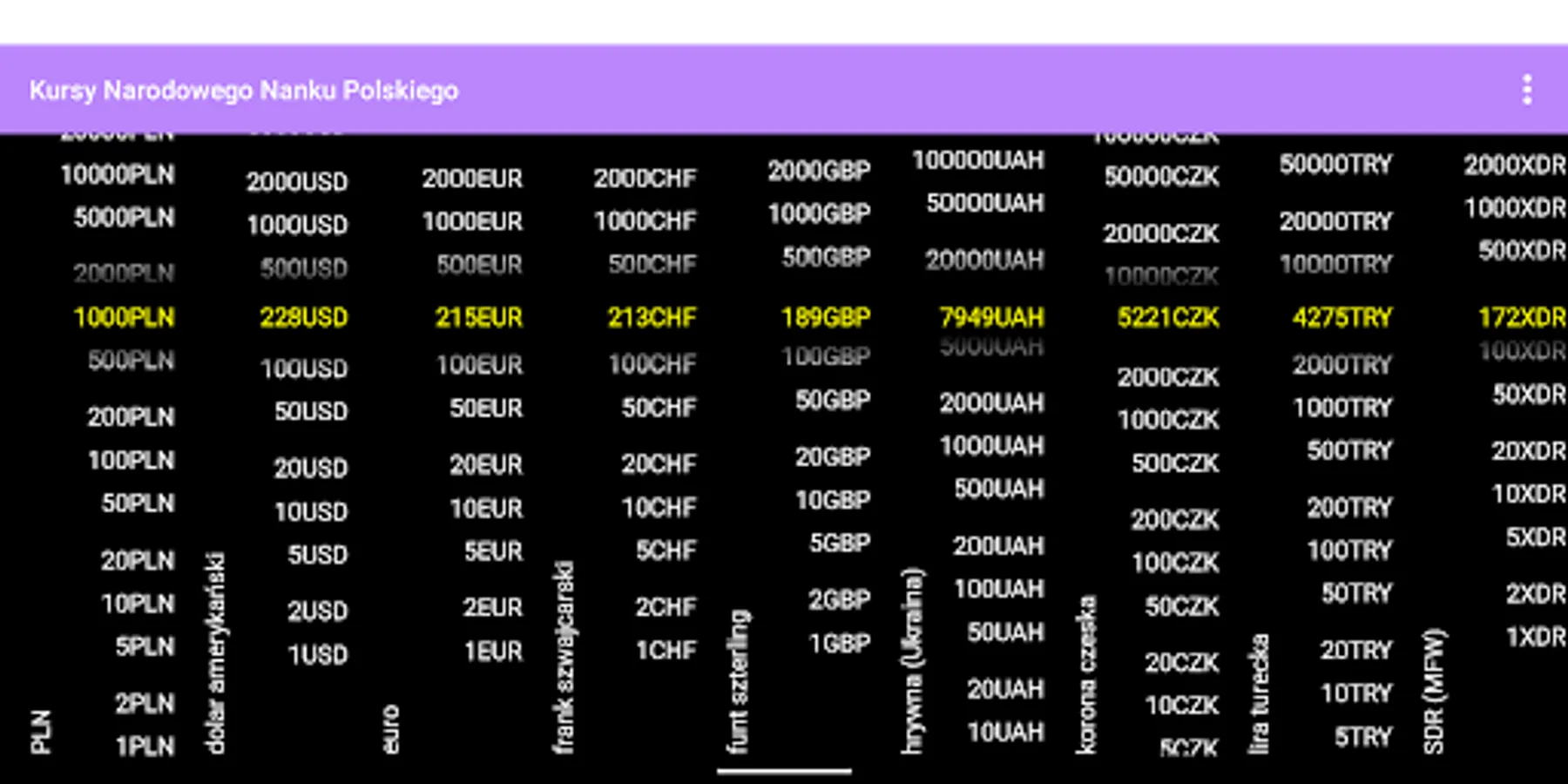 Thanks to the ruler on a logarithmic scale, you can quickly estimate the conversion between currencies