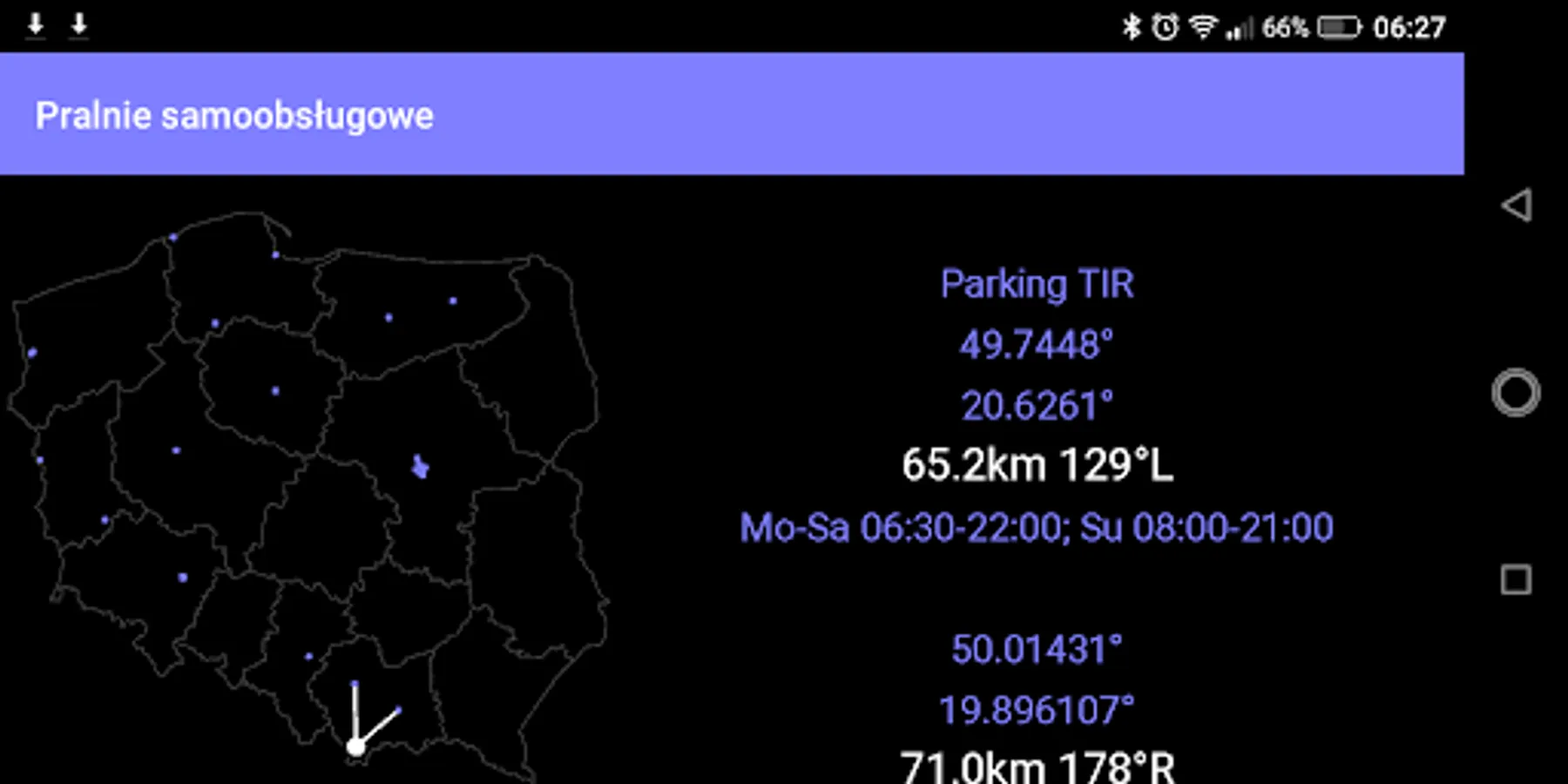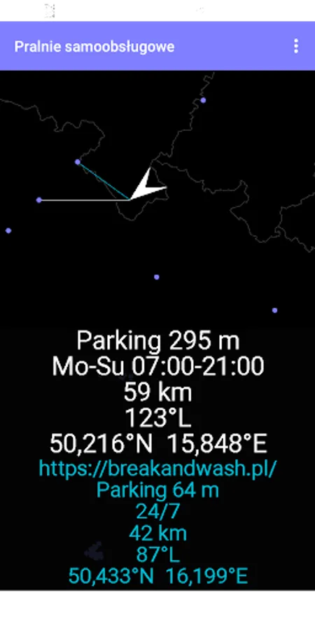 The application displays notifications when you are approaching a self-service laundromat and the navigation setting for it