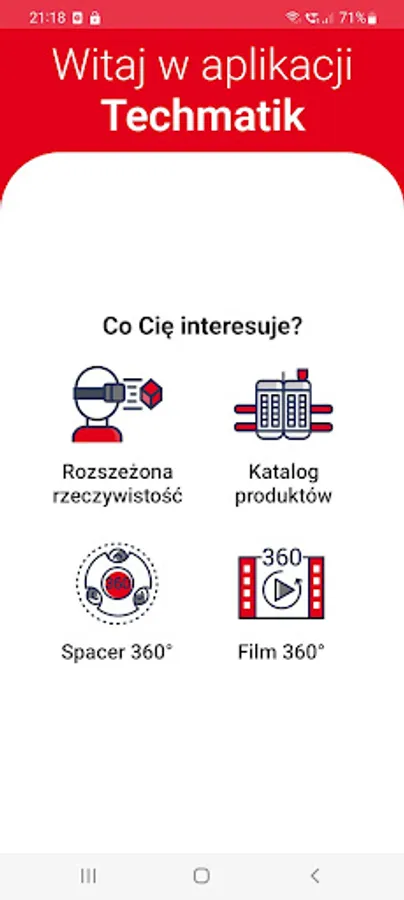 The Techmatik mobile application is intended for customers of Techmatik S.A. and offers information about the company's product portfolio. The mobile application enables the use of augmented reality in selected Techmatik paper advertisements. In addition, the application has been enriched with a virtual walk and a 360 movie that you can play on your phone.