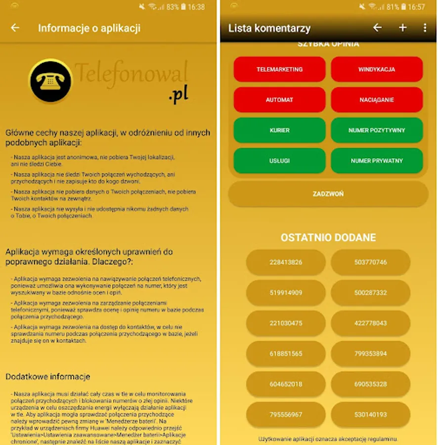 Paid application with no ads to automatically block unwanted calls from numbers that other users have added as unsafe, unwanted, spam connections and phishing or very expensive. In the paid version Who is calling - show true caller PL. Phonealny.pl service will be secured without ads which in the usual version are displayed. The application shows opinions about the calling phone number from Poland, England, Germany, France, Russia, Spain, Italy, USA, other (if it is in the database). If there is no number in the database, you can add it. The application blocks calls from numbers that have negative reviews (1-3 / 10). The application can block all incoming connections. Monitoring and blocking management is in set-ups. The application does not check the numbers that are saved in the book. The opinion base has over 10 million records (several countries including Poland). In the application you can also check each number along with reviews. There are no limits on downloading and sending reviews and checking numbers. Attention. This app does not follow anyone, does not have access to the location. This is probably the only application that does not provide information about your number and calls, as well as does not save who called you. Soon, paid version without ads and corrections. With us, the largest database of reviews and phone numbers is current 2018.