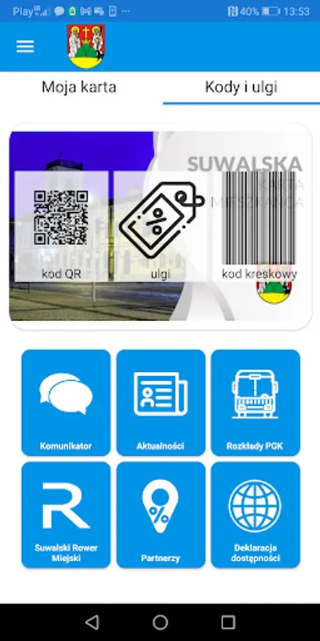 The Suwałki Resident Card application is a mobile version of a plastic card. The application enables, among others