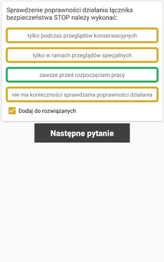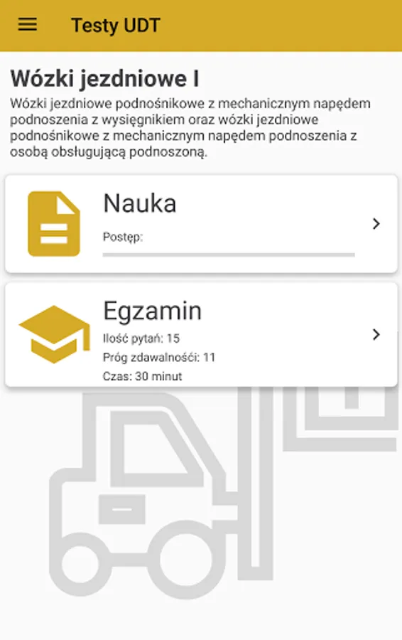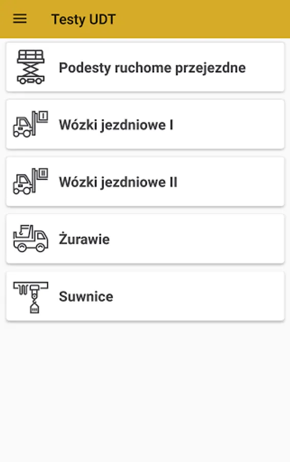 The UDT Tests application is intended mainly for people who obtain the qualifications of the Office of Technical Inspection for handling devices. The theoretical tests provided in the application are developed in accordance with the rules of the theoretical exam of the Office of Technical Inspection. The UDT Tests application is available for iOS (App Store) and Android (Google Play) mobile devices, as well as for Windows 7 and 10 desktop computers (download on this page).