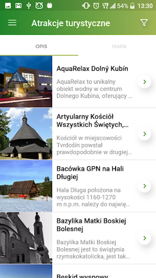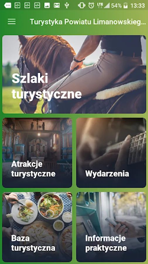 The application has been expanded with the following elements: cross-border tourist quests - puzzles Tourist District Limanowski after and Dolny Kubin, an integrated module that connects to the 50 in the district beaconami Limanowski and Dolny Kubin, the application also has a module for viewing google cardboards spherical panoramas.