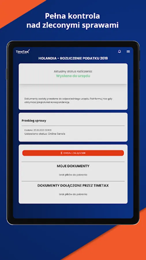 We have prepared a solution for you! Now you can settle your tax at home or any other place convenient for you. Sit comfortably, answer a few simple questions, and attach the necessary documents from the list.