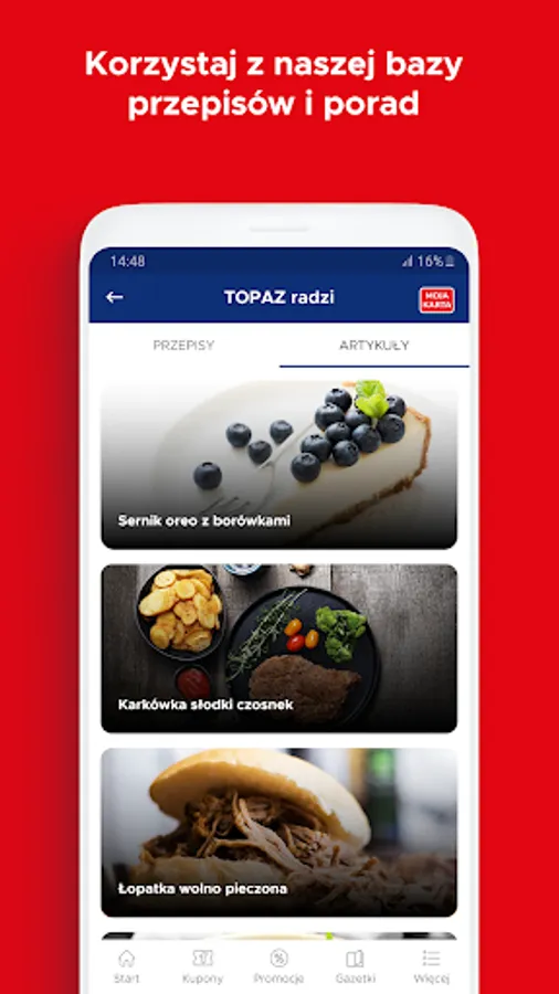 Install the application of the Polish chain store TOPAZ and browse the most current promotions, get inspired by interesting articles and recipes for delicious dishes. But it is not everything! With the application you will always quickly find the nearest store and you won't miss promotional offers.