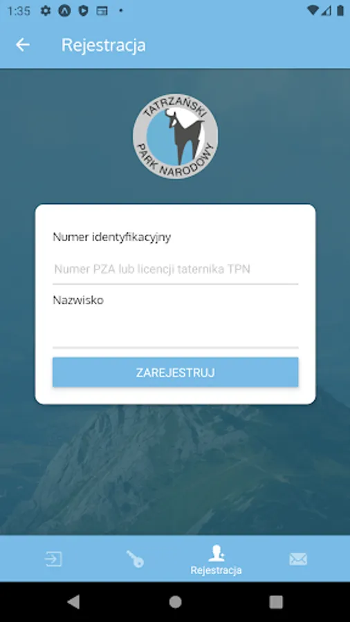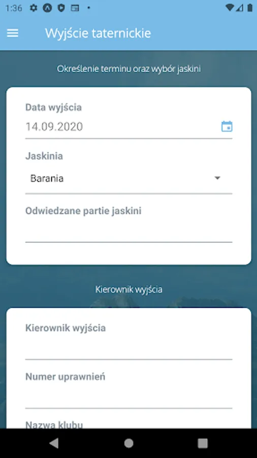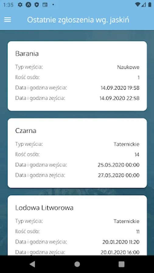 The application allows you to register the entrances to caves made available for cave mountaineering in the TPN. It is available only to people with a PZA cave climber card number or a TPN cave climber license.