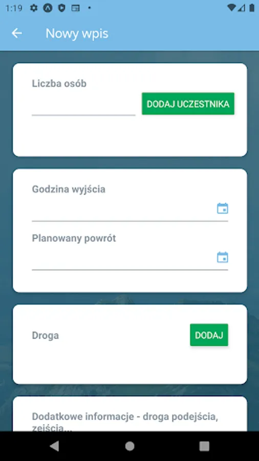 The application allows you to register mountaineering exits on shared climbing routes and downhill lines made available for extreme skiing. It does not apply to tourist exits along marked trails.