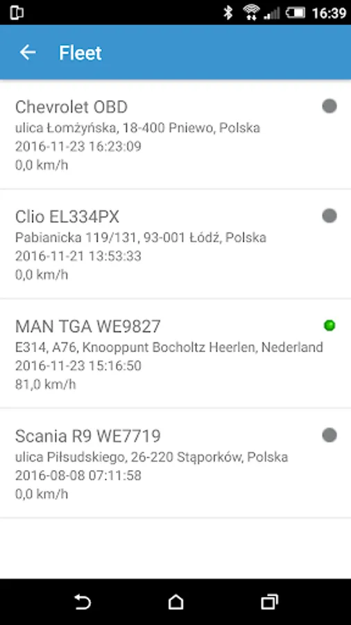 Application TRAKERO FLEET enables fleet management in companies. With this application, we have access to our vehicles from anywhere through mobile phones and tabletom. Fleet Manager can quickly locate vehicles, see the current driving mode, progress according to the schedule or ecodriving driver. The application is very useful for owners of transport companies, shippers and individual users.