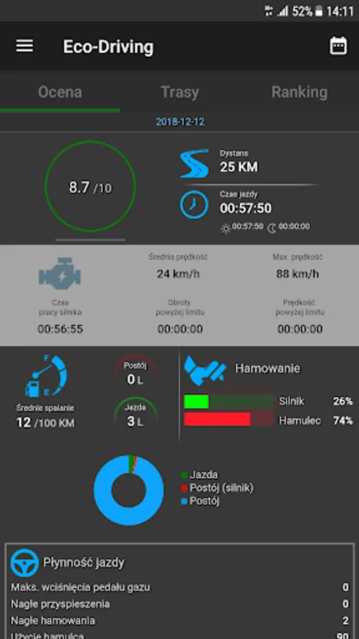 - Features eco-drivingu possible to analyze and improve driving style,