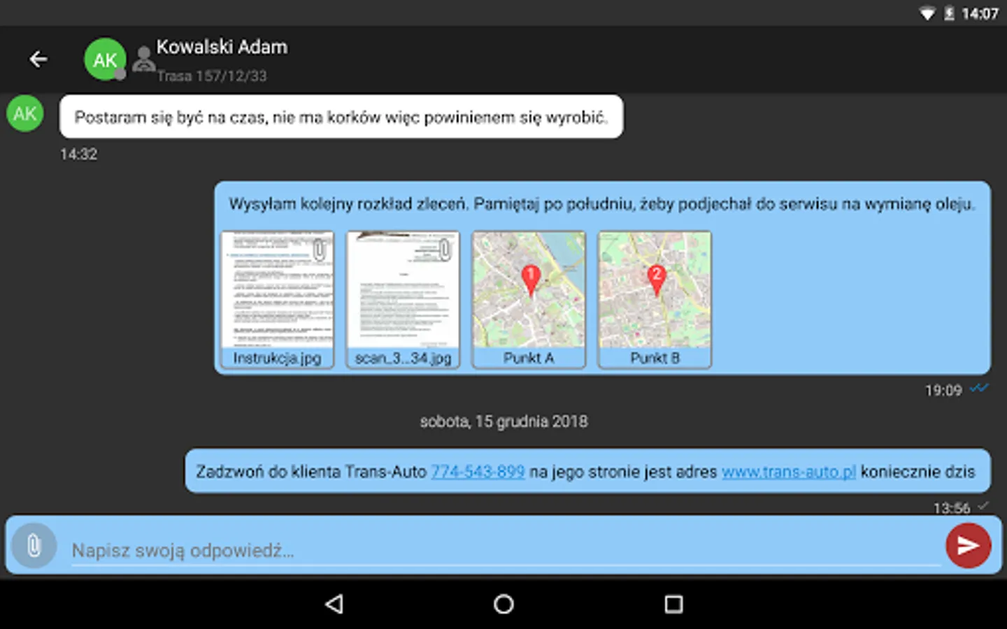 - The function of uploading photos or scanned documents directly to TransMobil system allows full control of the documents held in the vehicle,