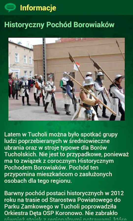 The "Borowiackie Trails" is the official guide to mobile and cooling one of the most beautiful parts of the District Tucholsky. Located in Tuchola - one of the largest forest complexes. The application is also a specific invitation for a walk - it contains the best tracks in the area, the most interesting places on the trails.