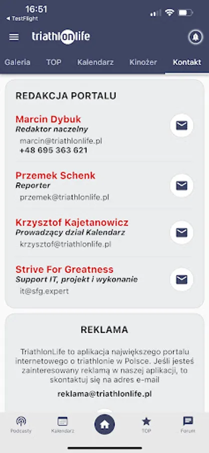 TriathlonLife is an application of the largest internet portal about triathlon in Poland. Here you will find current information from Poland, Europe and the world. Interviews, talks with professional triathletes and amateurs, reports from the competition, free podcasts and guides.