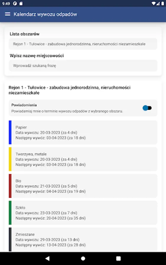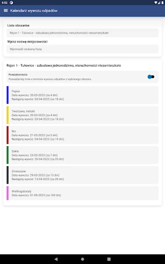 The application will remind you about the date of collection of individual waste, inform you about the rules for conducting selective waste collection, and inform you about news related to this topic.