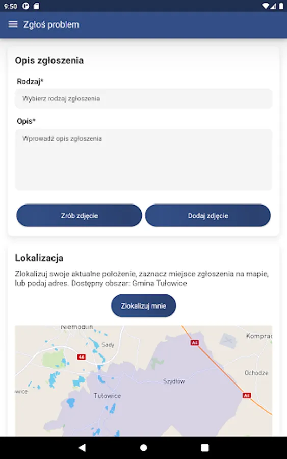 The application allows you to report various problems or faults in a very simple way. It can be, for example, a dangerous place, street lighting failure, a problem with waste disposal or an illegal garbage dump. Select the report category, take a photo, press the locate button and submit the report.