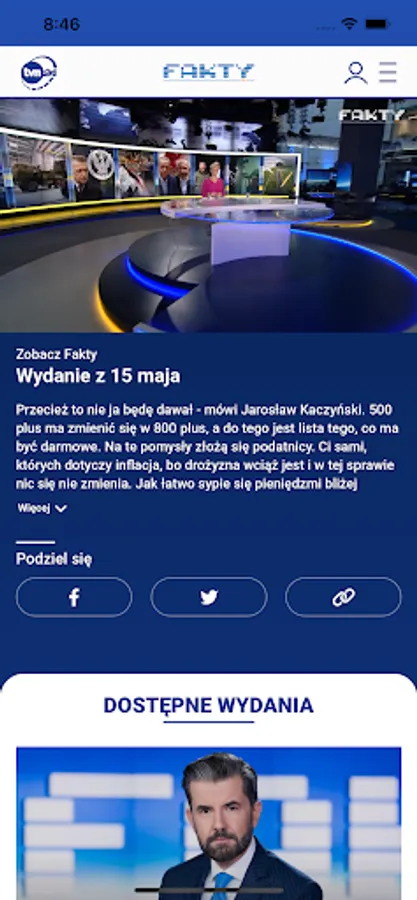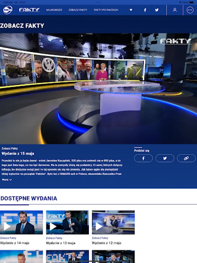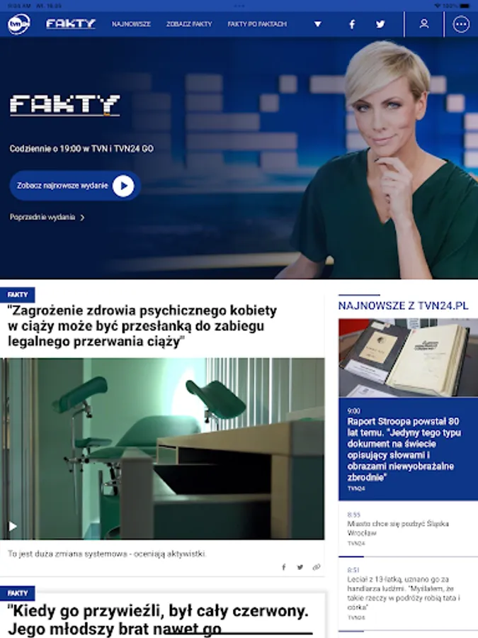 In the application, you can watch the interview with "Facts on the Fakty" TVN24, the most interesting materials from the program "Facts in the South" TVN24, "Facts on the South" TVN24 and "Facts of the World" TVN24 BIS and the "rank Mazur", that is a subjective summary of the week by reporter "Facts" TVN Maciej Mazur.