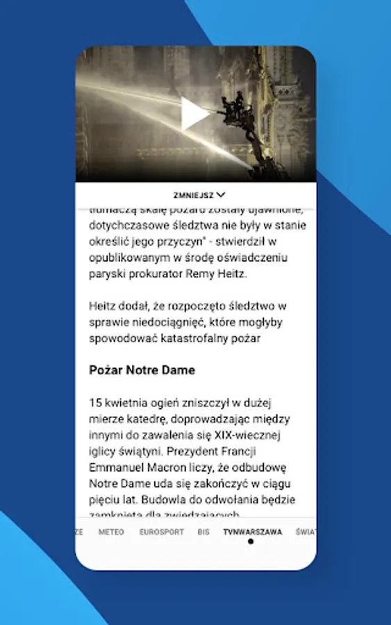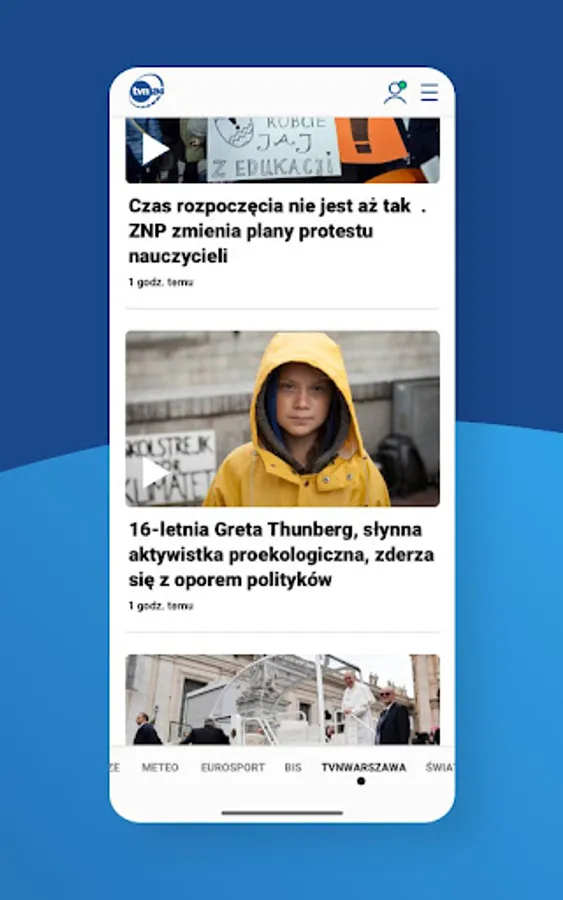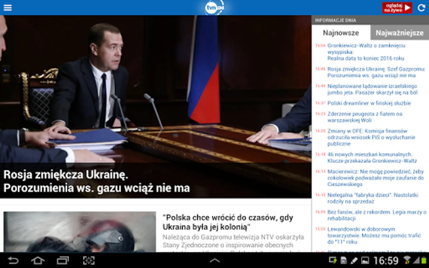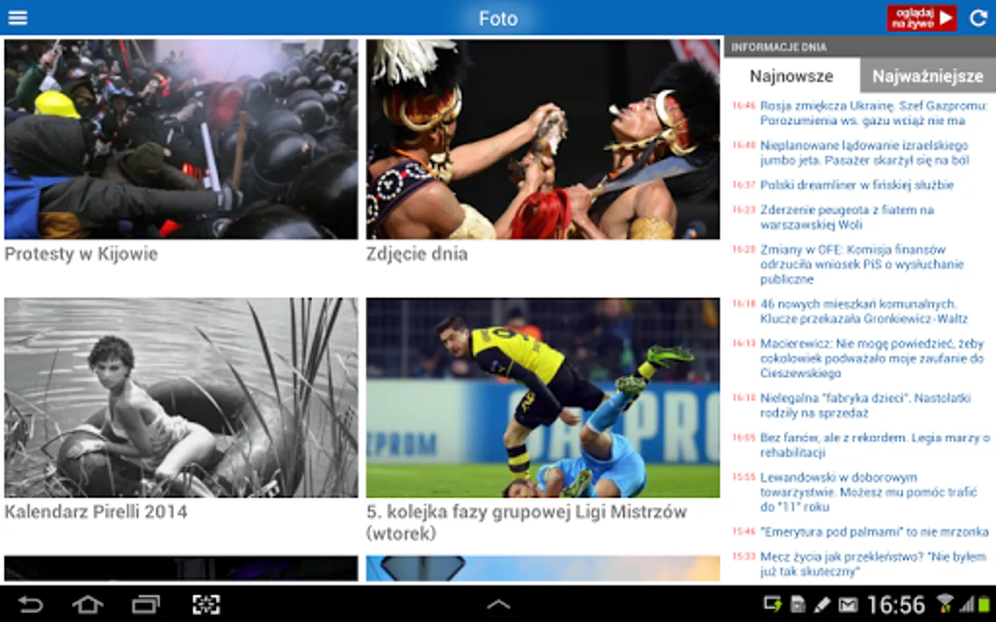 Thanks to the application, you can also view all information from the tvn24.pl website, divided into categories, among others. Poland, World, Sport, Business, Culture and watch video and photo.
