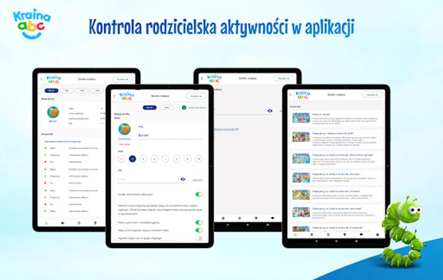 Is your child's safety important to you? For us too! Therefore, in the Land of ABC, there are no ads or contact with content that could have a dangerous impact on the development of children. In addition, we give you a parental panel that allows you to monitor the time that children spend in front of the screen. It also allows you to select the content watched by the child.