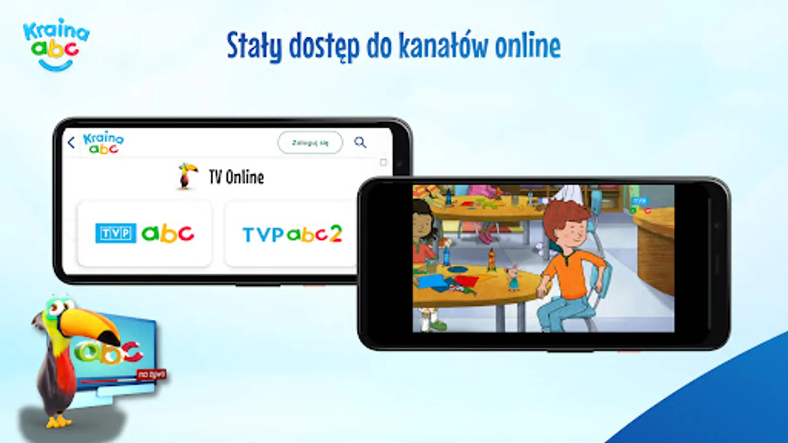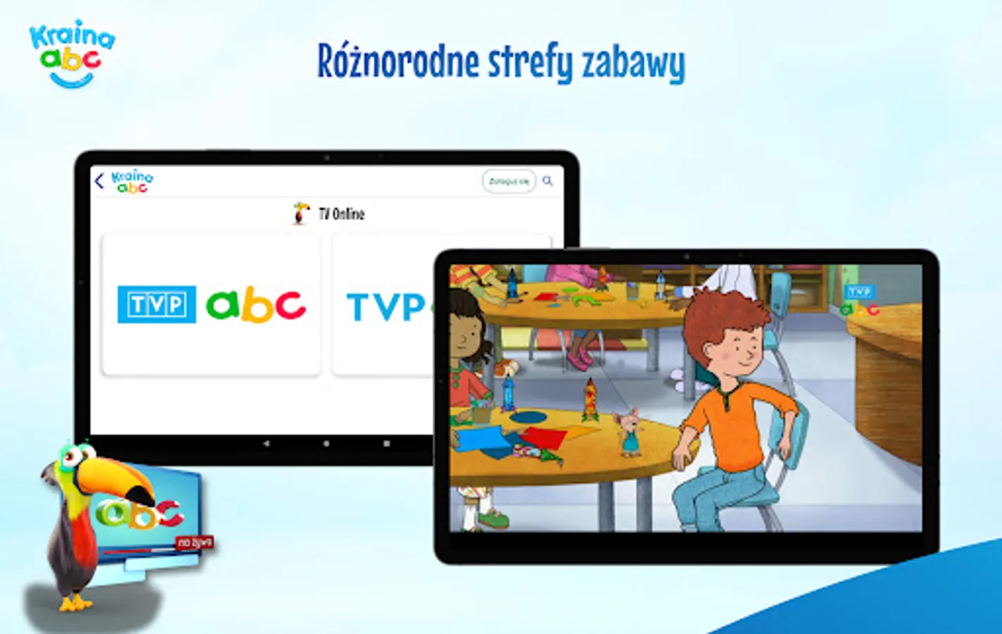 TVP ABC is the only TV station in Poland that creates its own programs for children! These are the only, unique and original: Reading Before Sleeping, Hello Can I Eat You, Alchemist, Friends of Bear and Margolcia, Ziarno, Figu Migu on Planeta Czochras, Tyci Bzyka encyclopedia and Pets Readers. Together, we will be able to go on a trip around the world together with the Nela little reporter program.