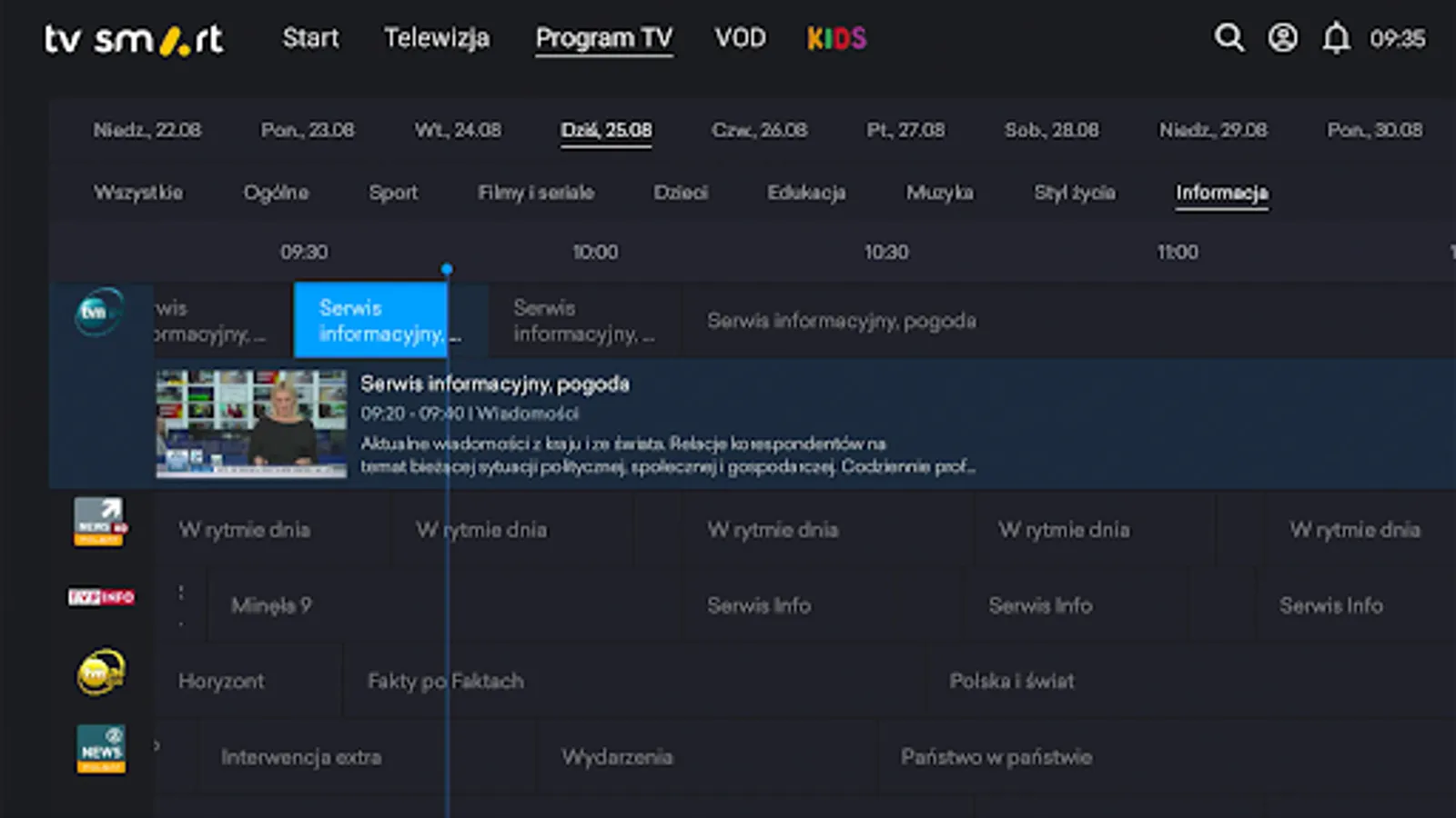TV Smart GO offers access to live TV and an extensive video library on demand. The application is intended for subscribers of operators: Vectra, Multimedia Polska, JAMBOX.