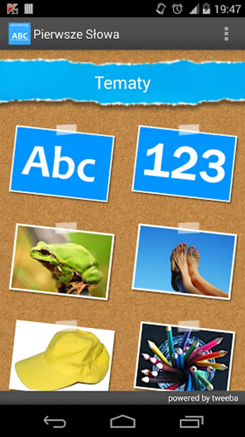 The first words - Science Children is a mobile application for learning the Polish language designed to appeal to children - the youngest users. With this application, learning new words in Polish can be a way to introduce new vocabulary for our children, but also real fun. It is an alternative to traditional books to learn first words. It facilitates learning in any convenient place for us. It may be useful at home, but also in unusual places - when traveling in a queue to see a doctor - when our child is bored, and we want that it took something useful and engaging. The entire application totally free can be downloaded from the Market Google Play (Android). What important works both online and offline.