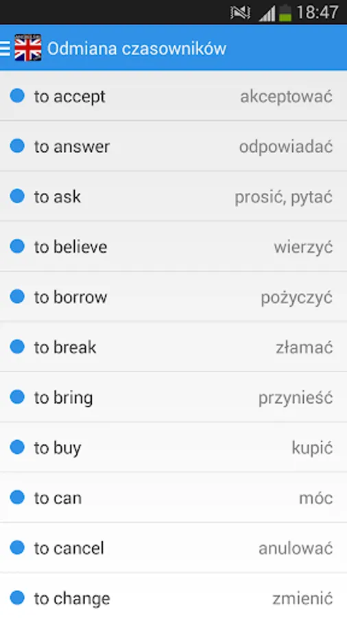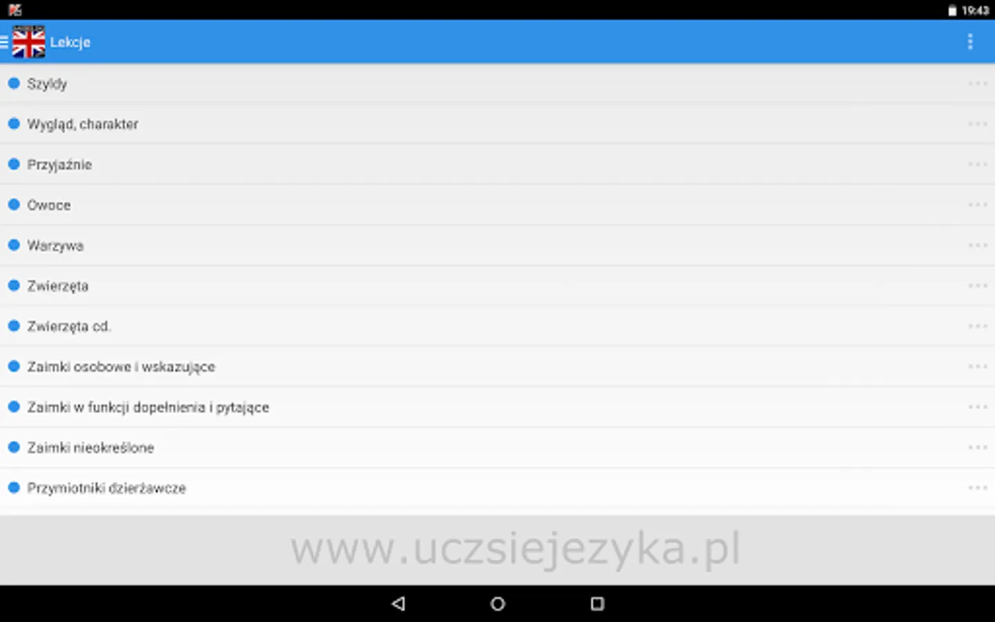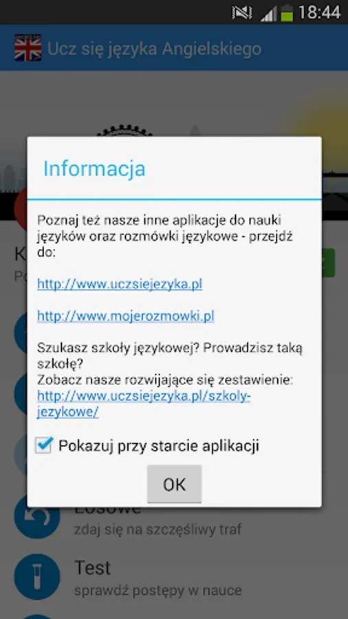 Phrases are categorized in classes and tests, which allow you to learn progressively. The option to hide the importance of the initial English words in Polish helps in remembering. In addition to learning by the lessons it is possible to draw words. Words English can be read by the teacher.