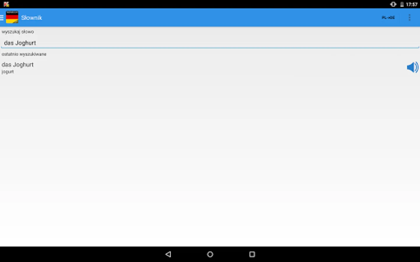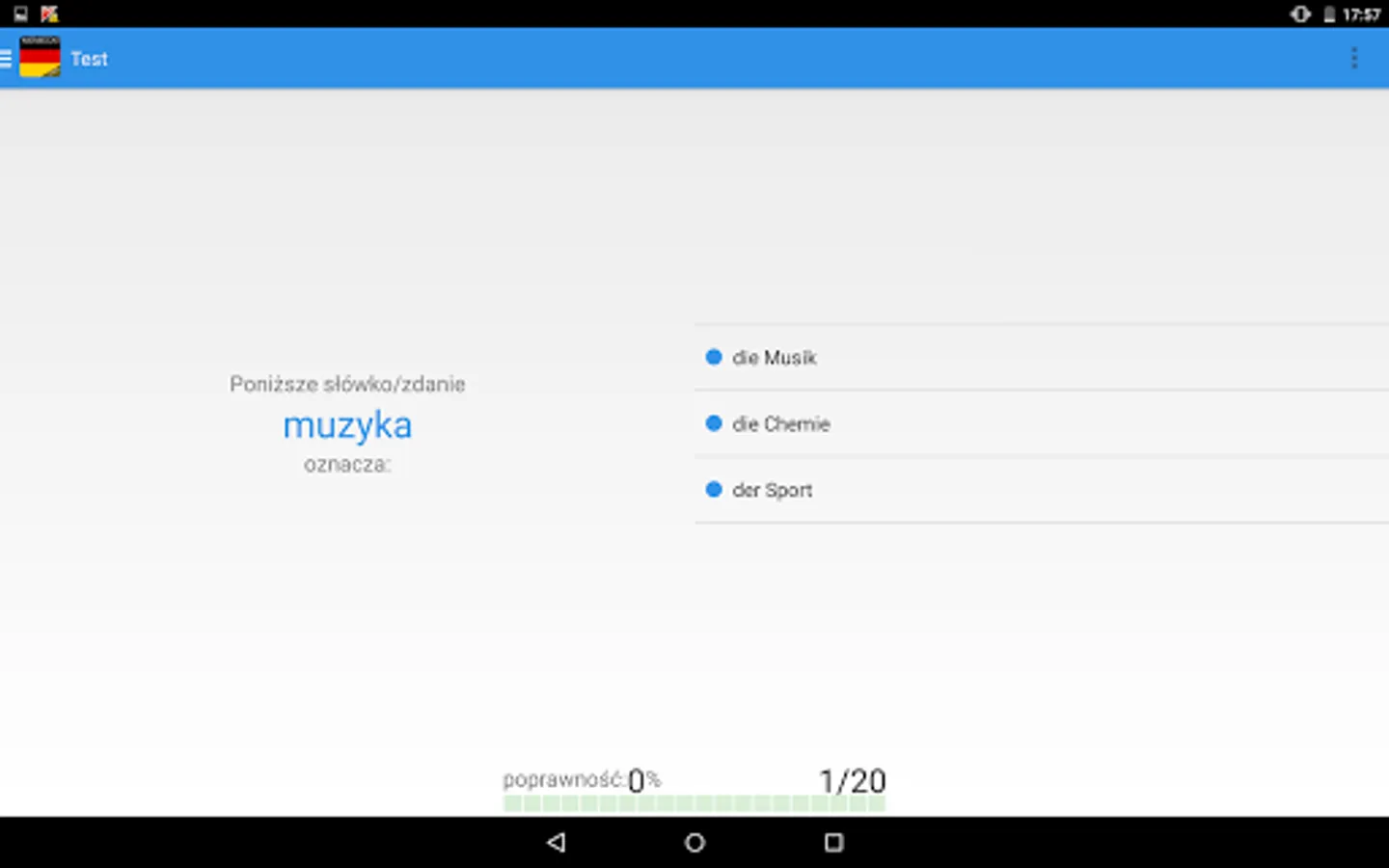 Phrases are categorized in classes and tests, which allow you to learn progressively. The option to hide the importance of the pre-German words in Polish helps in remembering. In addition to learning by the lessons it is possible to draw words. German words can be read by the teacher.