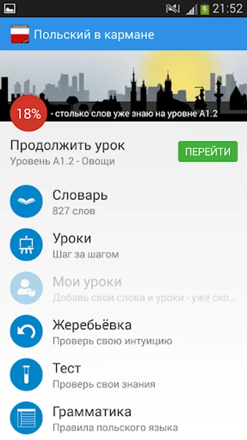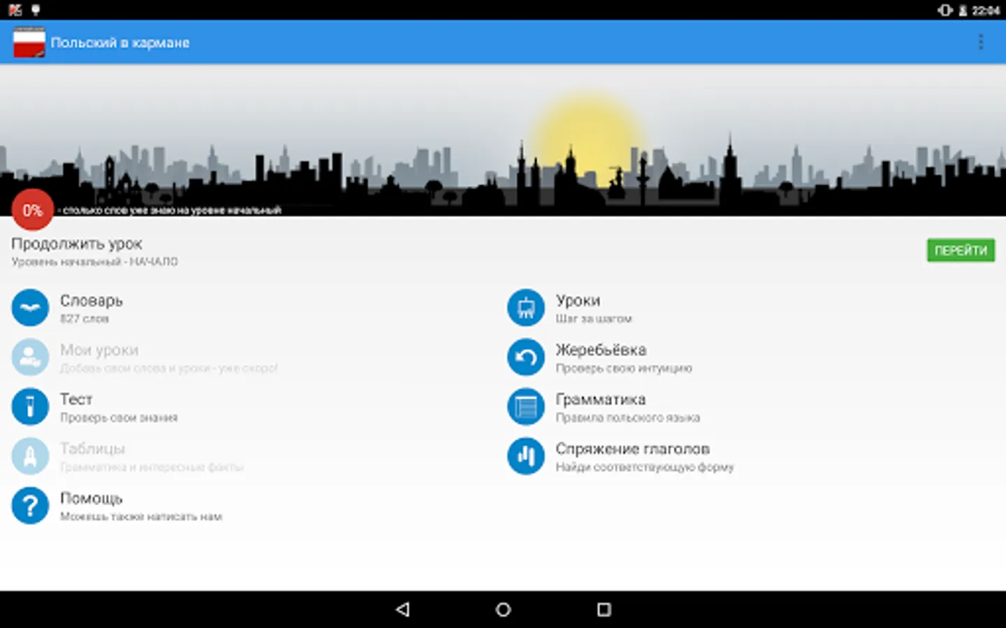 The application also serves as a mobile dictionary and easy book to learn the language. Polish course for beginners and advanced always have on hand.