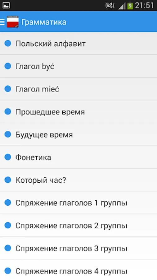 "Polish - language learners" is a free application that allows you to study on your phone, smart phones and tablets: