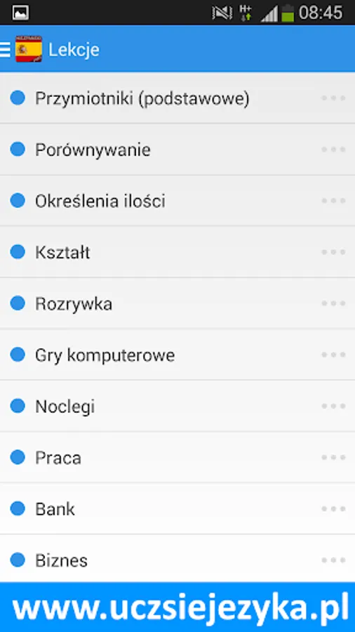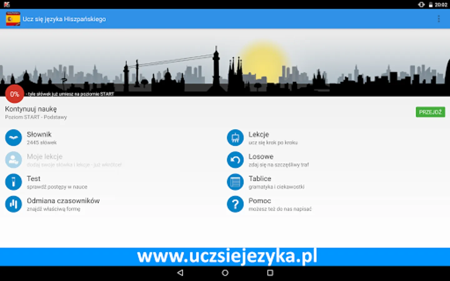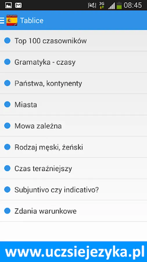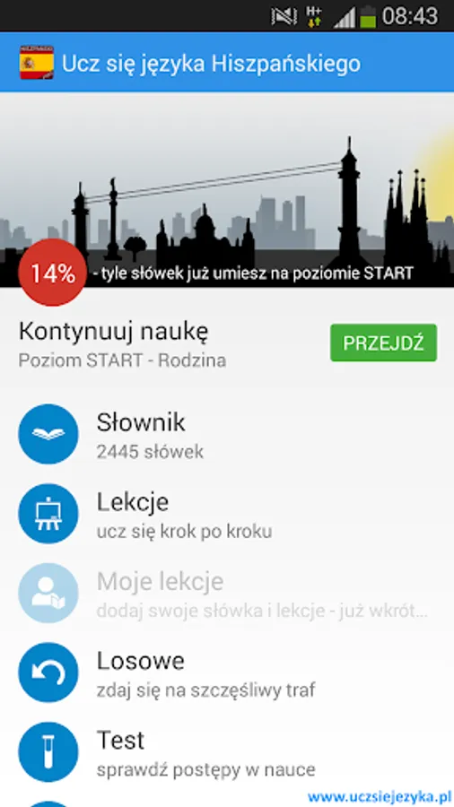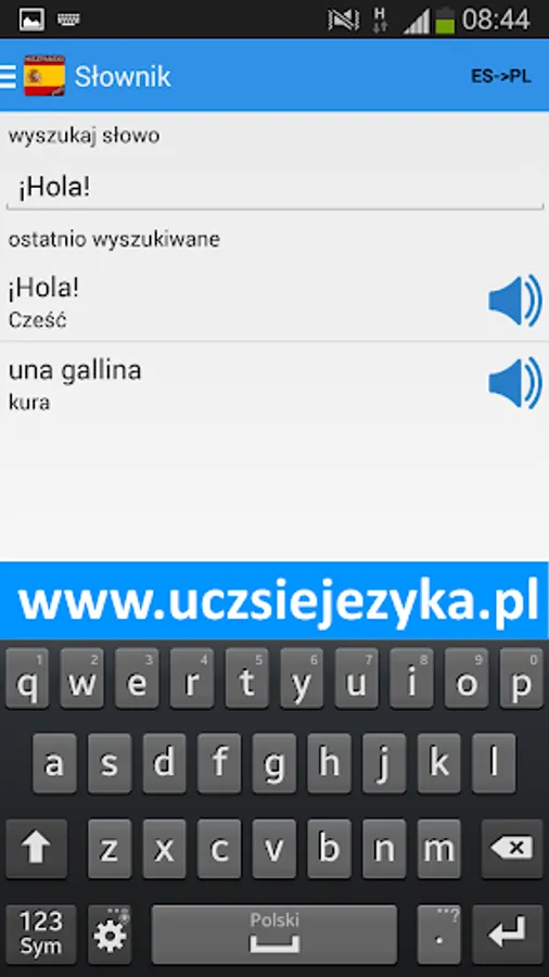 Spanish language for free and fast! Learning Spanish with a free application http://www.uczsiejezyka.pl allows for learning words and phrases and grammar. It's a complete Spanish course on mobile devices - AppAward were awarded for the best educational program on Android!