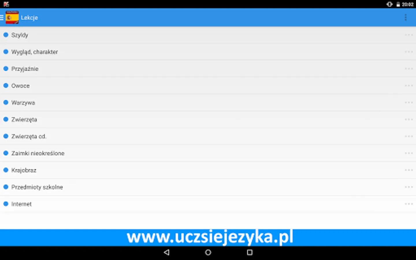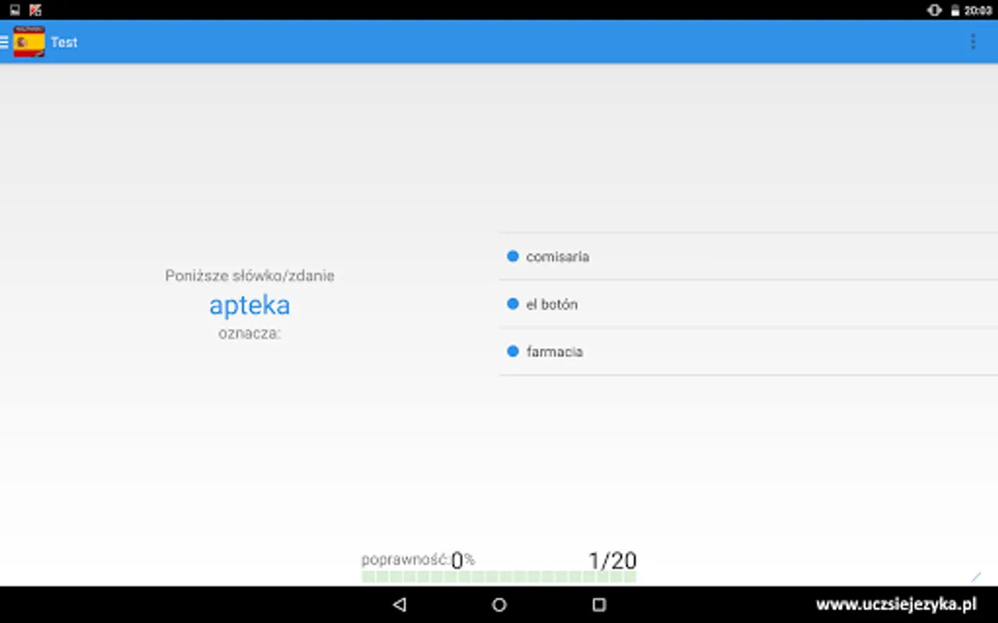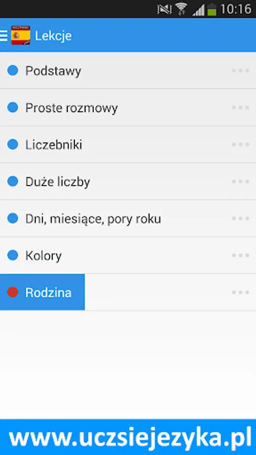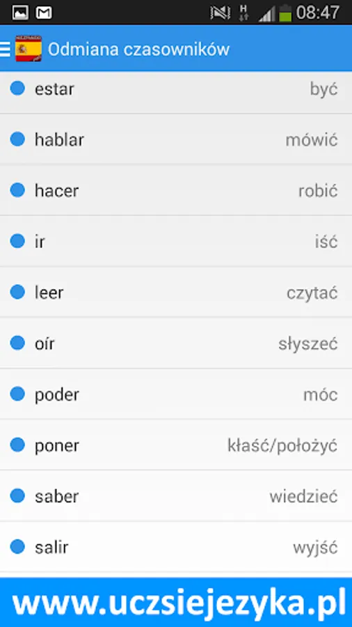 Spanish language for free and fast! Learning Spanish with a free application http://www.uczsiejezyka.pl allows for learning words and phrases and grammar. It's a complete Spanish course on mobile devices - AppAward were awarded for the best educational program on Android!