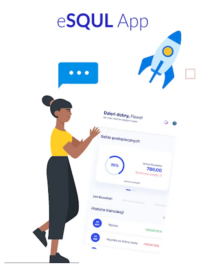 Financial analyzes, automatic interest accrual, late payment notifications, the possibility of annual indexation, fast e-payments for the school, integration with over 2000 banks all over Europe. Communication with students using hybrid classes at home, the ability to check the availability of parking spaces at the school. Push notifications about payments, access to the account status in the mobile application and via the website, purchase of additional services with one click. Store with school gadgets in the mobile application, music history on the radio station, access to school classes via the Internet, online recruitment and much more in the school application - eSQUL.app!