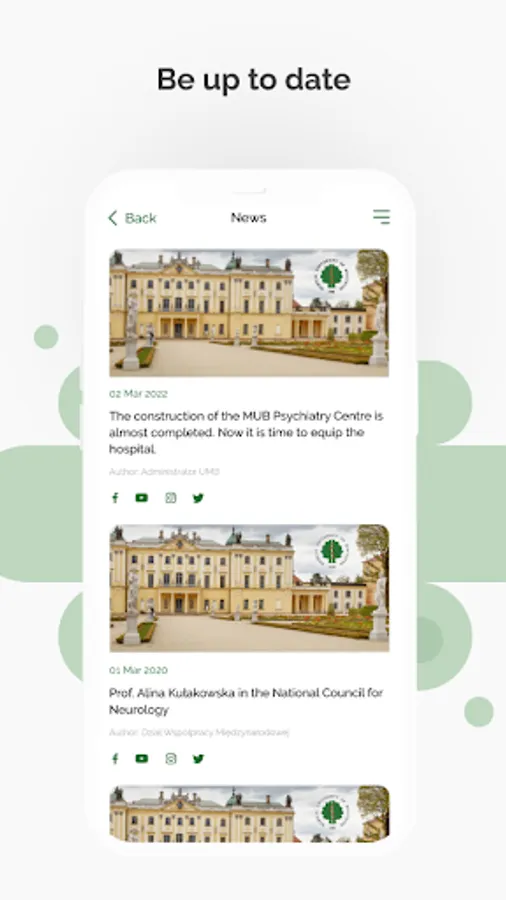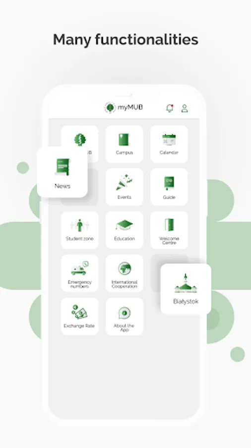The myMUB mobile application is a tool meant to facilitate the functioning of English-speaking students, PhD students and scientists at the Medical University of Bialystok (MUB) as well as their quick integration with the entire MUB academic community.In particular, the application is meant to ease getting around the university campus and Bialystok for new students. The content of the app includes also essential information about University, admission and many tips for foreign students. The app is a comprehensive guide for new students or foreign guests, including contact details of Dean’s Offices and MUB units, Welcome Centre, information on dormitories, student organisations as well as about city transport, legalisation of stay, security and healthcare in Poland.Here, students have the opportunity to check syllabuses, class schedules, study regulations, and easily contact the English Division Dean's Office. Two useful tools are also available: exchange rate calculator and schedule, a day plan management tool integrated with the smartphone calendar.Due to the fact that the mobile app includes tips and information about Białystok and the Podlaskie region, the app could be also useful for Polish students of the MUB as well as students from other universities located in the city.After expansion, the app allows you to log in to your personal profile, check your individual schedule and receive important notifications directed to the exact person, study year or exercise group. Moreover, you will keep up to date with events organised at the University thanks to one of the modules. Upgrade of the campus map module, by adding photo miniatures of some buildings, virtual walks, and closest parking lots, will facilitate using this functionality. Furthermore, you can check an exchange rate of foreign currencies in relation to each other, including new currencies such as Swiss franc, Canadian dollar, Indian rupee, Yuan renminbi. In addition, the app is more accessible thanks to a possibility to change a contrast and font size.The expansion of the myMUB mobile application is created as part of the project entitled "All roads lead to the MUB. Modern tools for the development of international promotion and the use of IT technology in building the University's potential".The project is financed by the Polish National Agency for Academic Exchange under the Welcome to Poland (2020) programme.