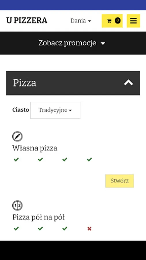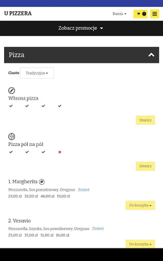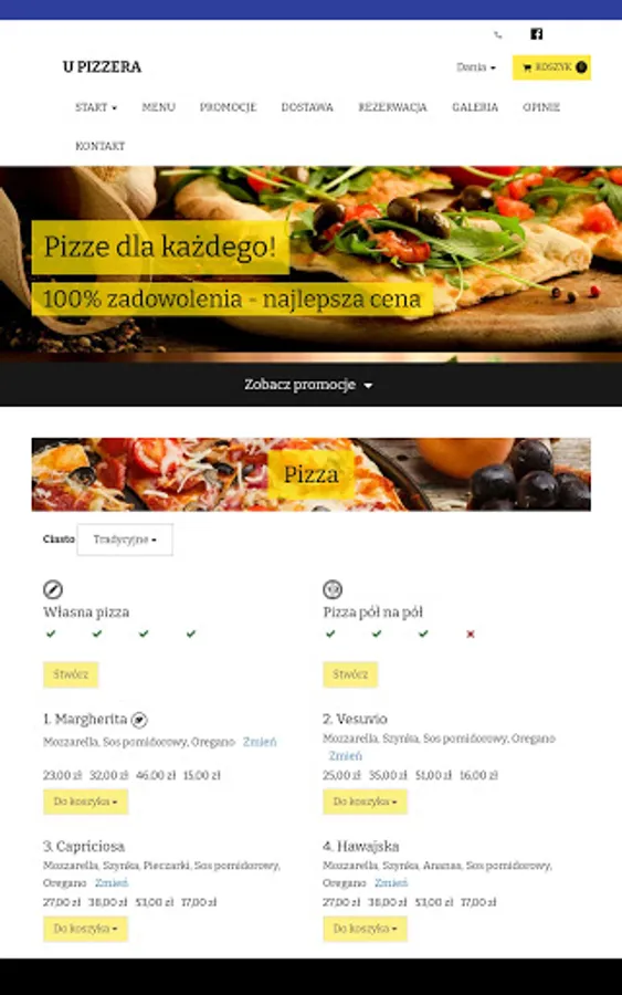 Application for ordering food from the U pizzera restaurant in Warsaw.