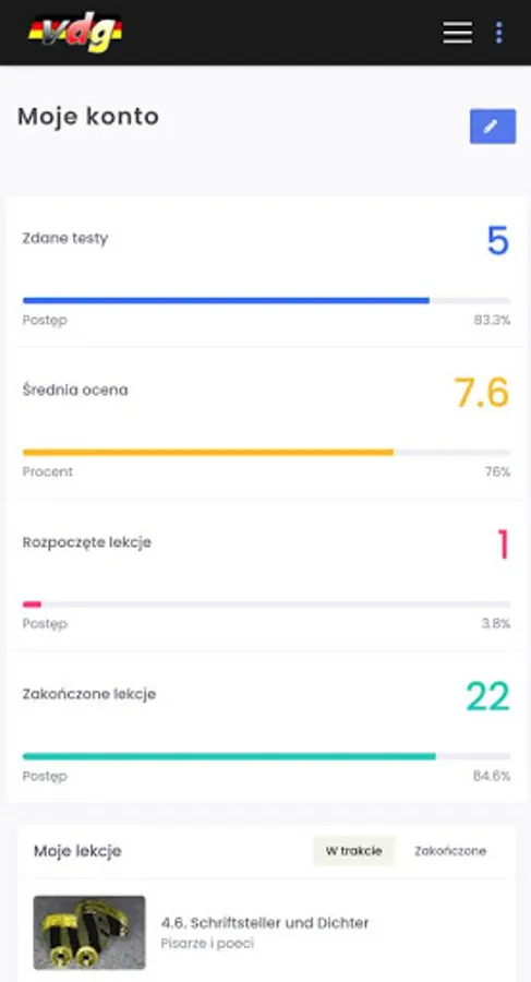 Application for learning the German language, getting to know information about the German minority in Poland, German history, landscape, art and culture and other German-speaking countries.