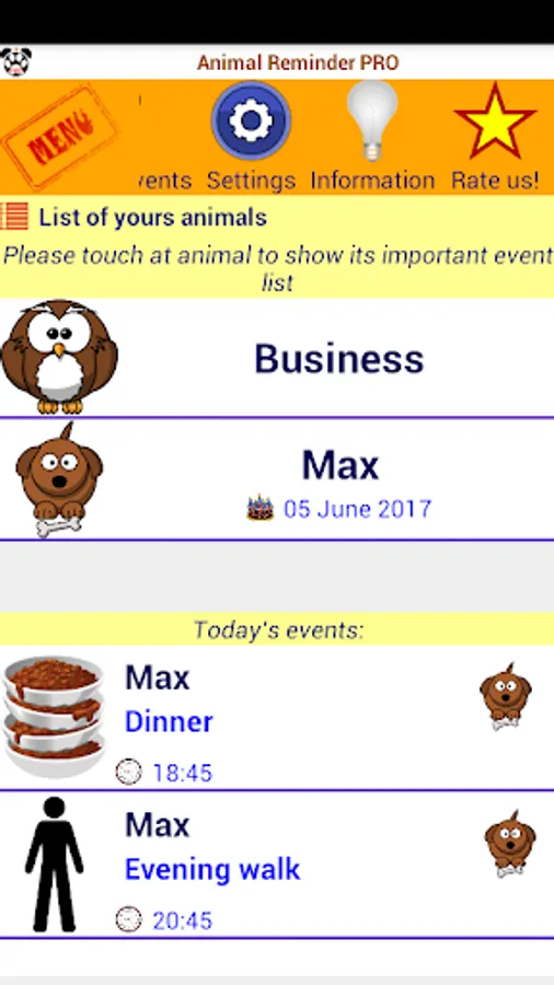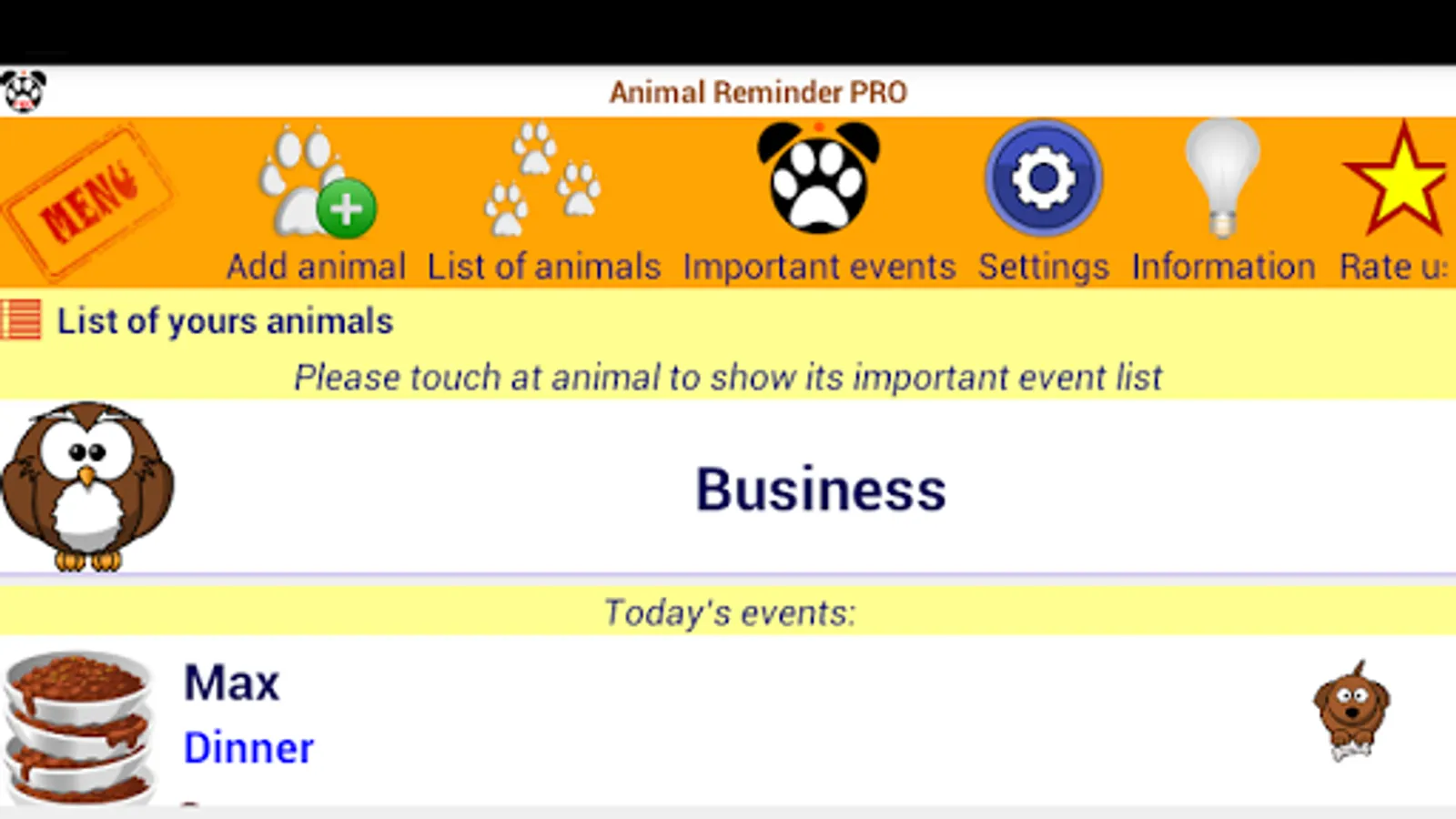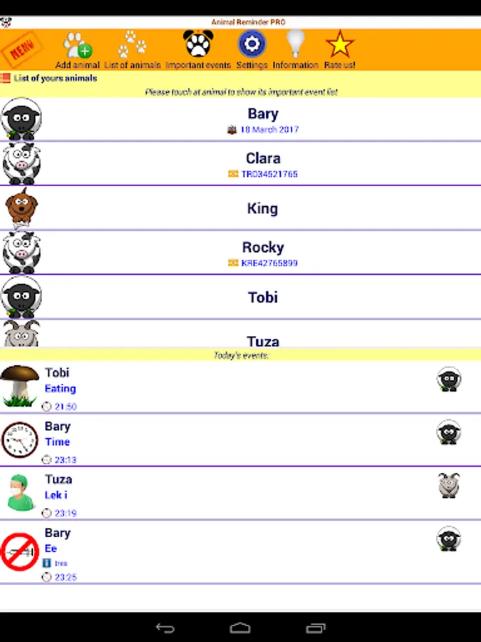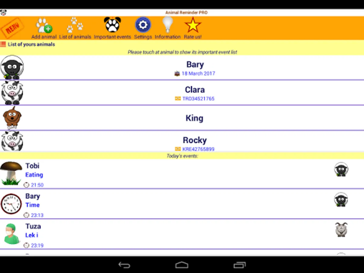 Remember! You can store in the application all the events which you want, need not be necessarily associated with animals. The application could potentially function as a so-called "Global Reminder" of a cyclicals or non-cyclicals events.