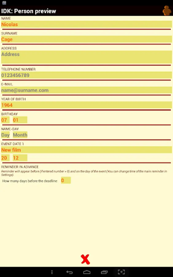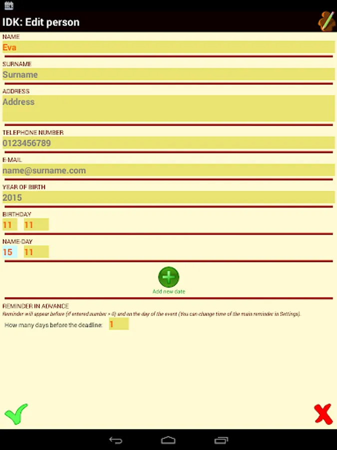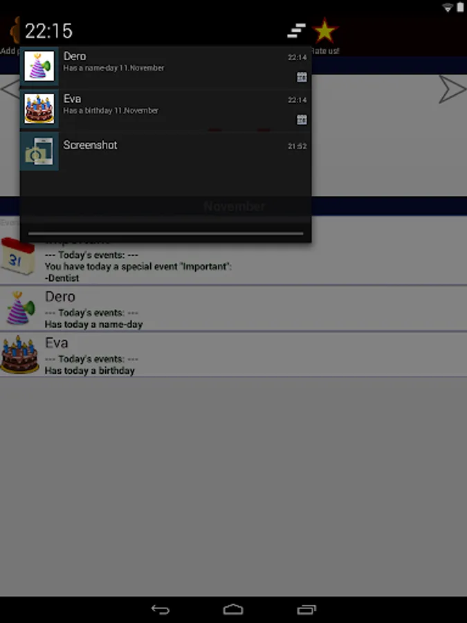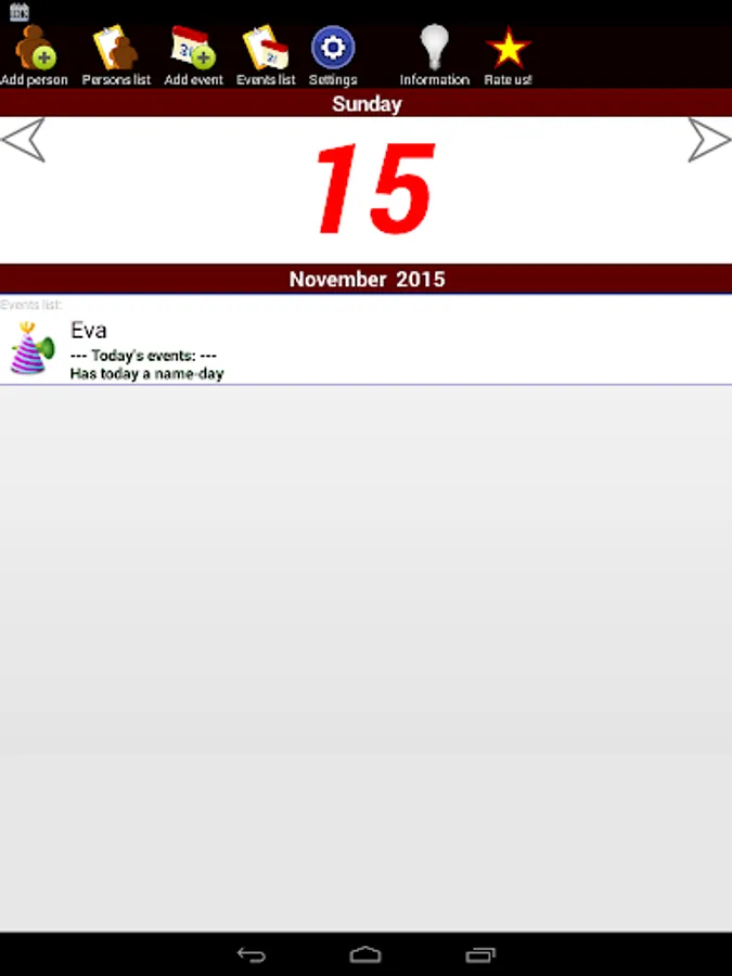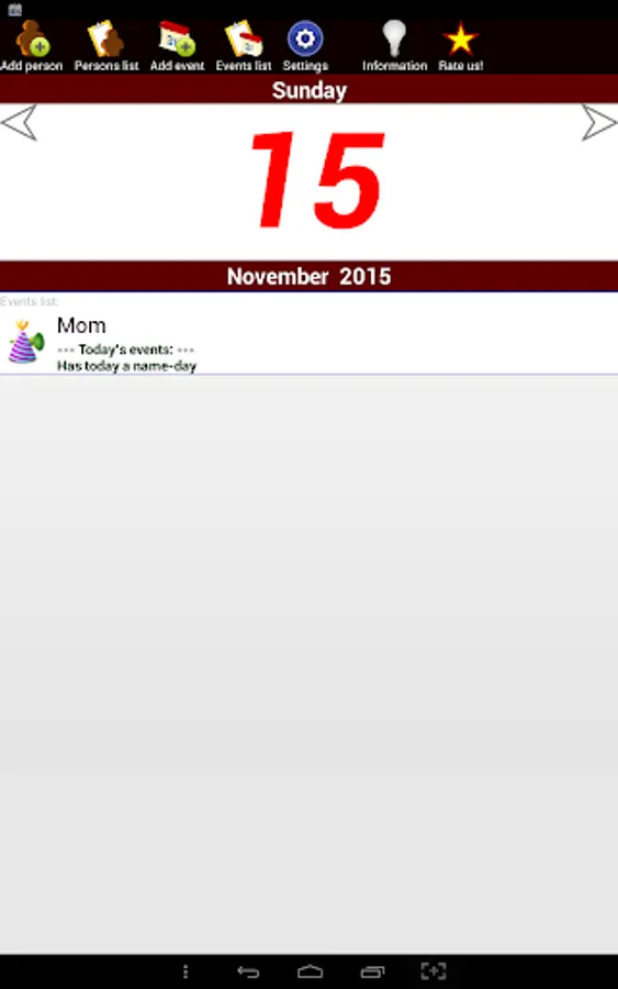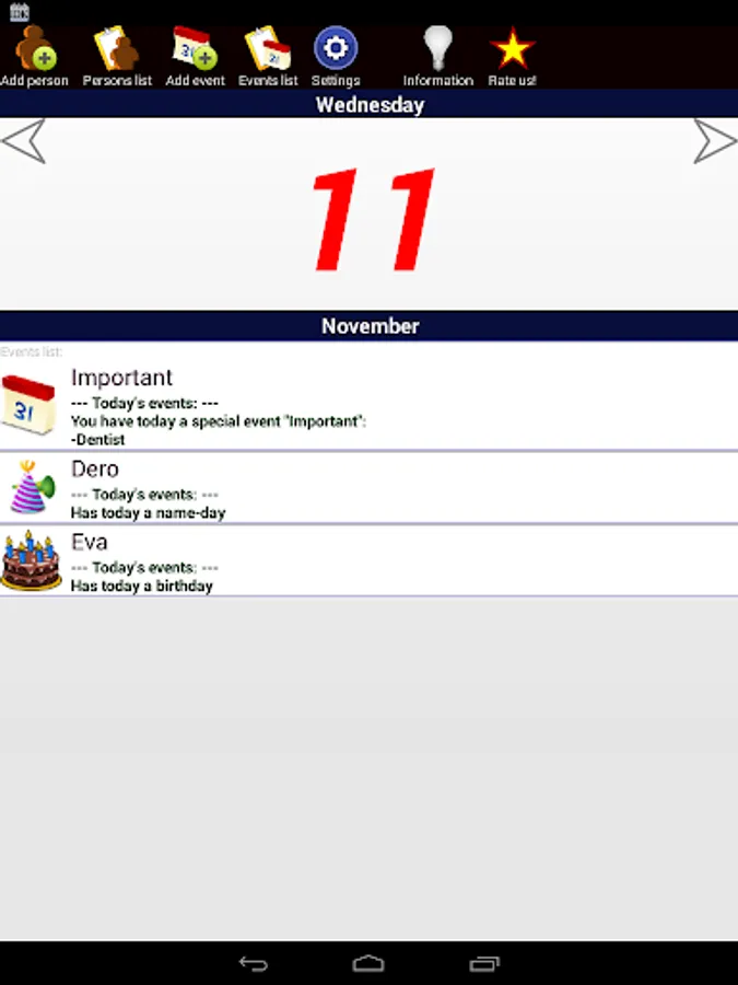 The application primarily used to store dates (eg. birthdays, name-days, anniversaries and other similar) important for you people. Also other significant events about which you want to be kept informed on the day of the event or earlier.