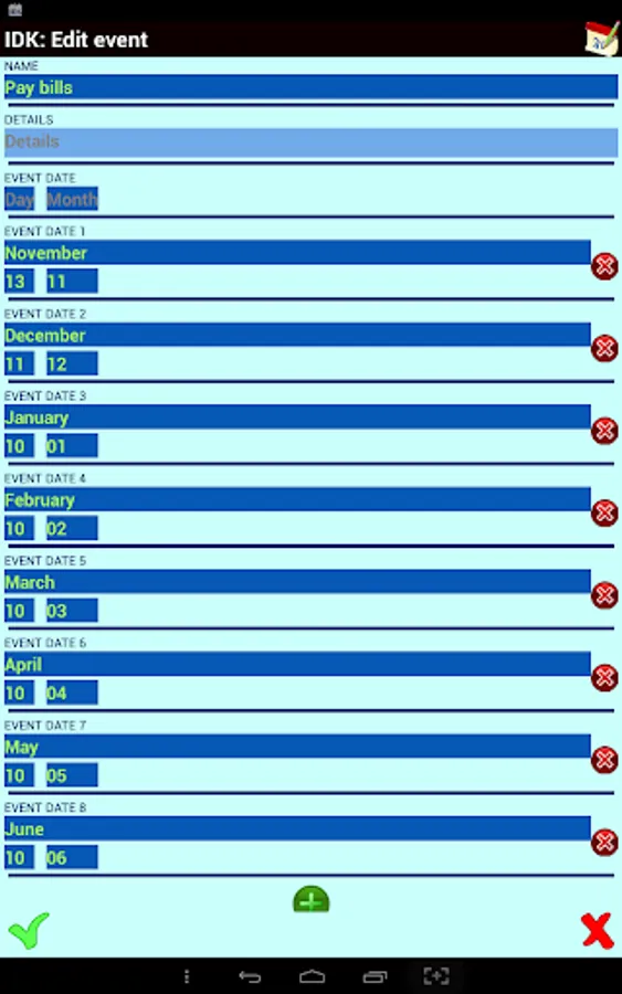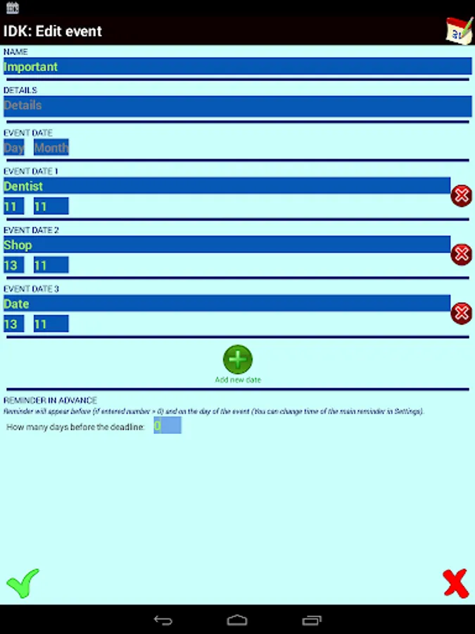 IDK (Important Dates Keeper) is very easy, pleasant and intuitive design.