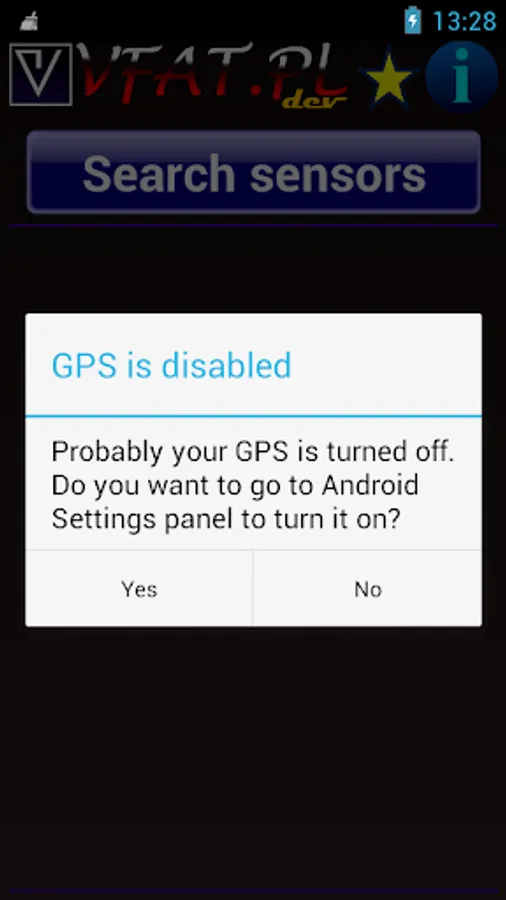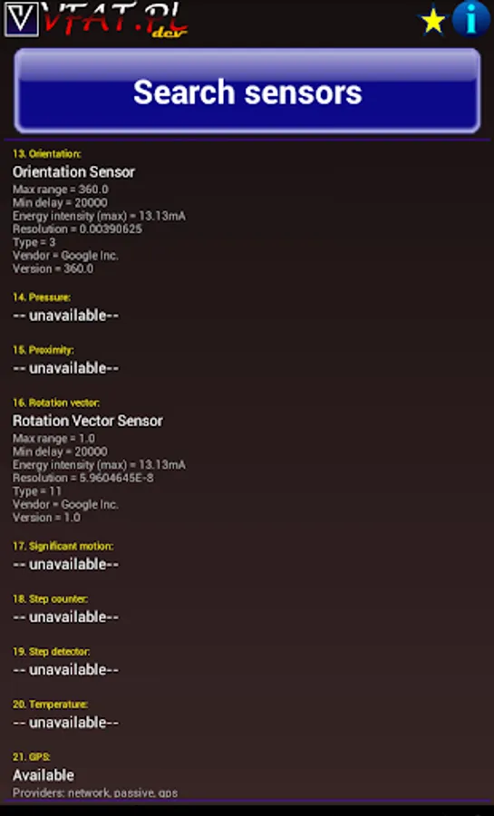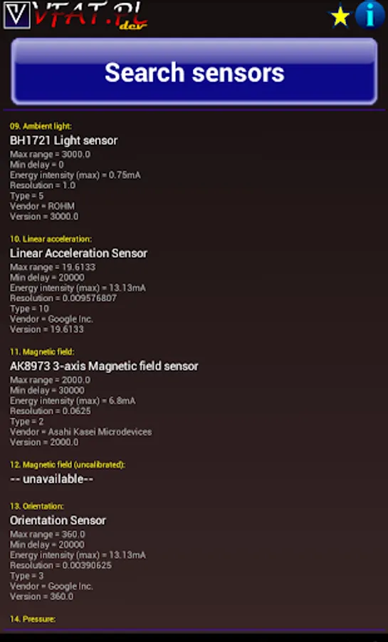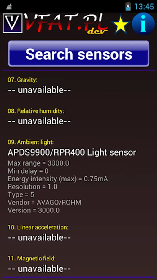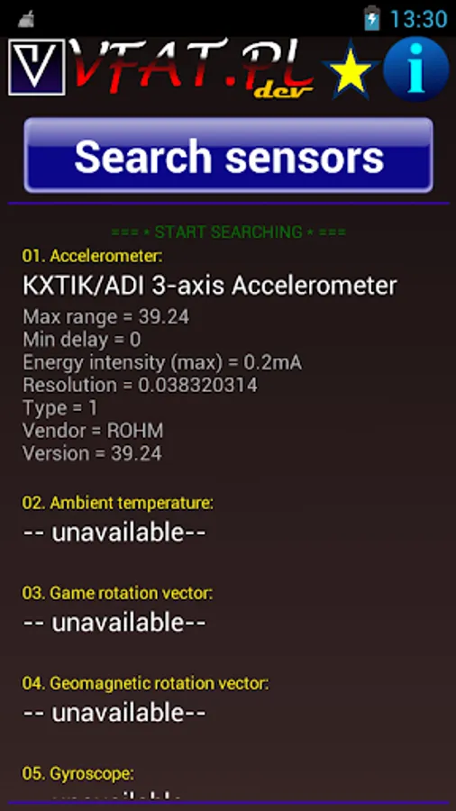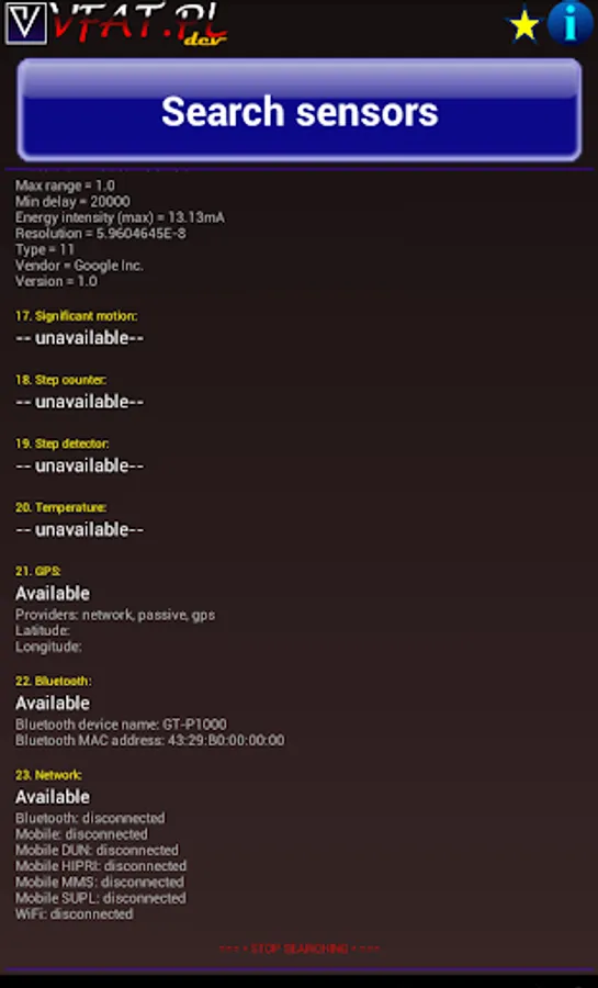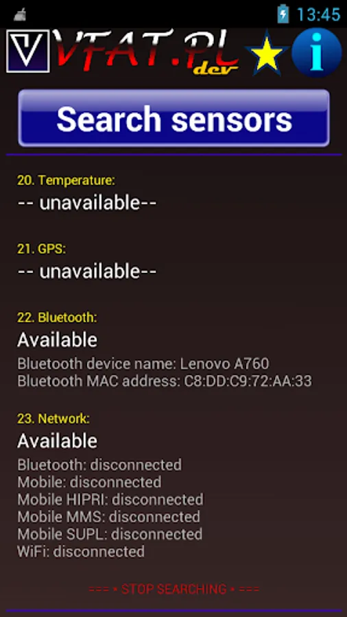 Application searches for all sensors (compatible with Android OS) that supports your mobile device.