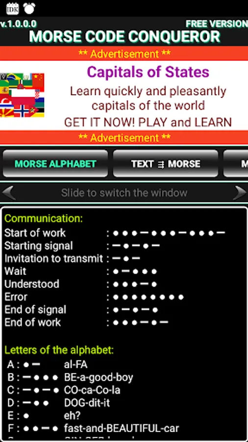 1. Learn a letters of the alphabet (with mnemonics), numbers and symbols of the Morse Code.